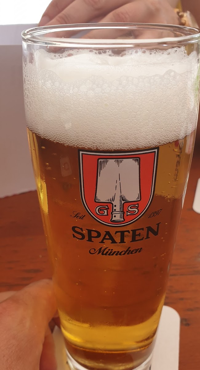 The menu stays true to classic Bavarian comfort food, and that authenticity really shows on the plate. One of the highlights that keeps guests coming back is the Ripperl. Served generous and full of flavor, the ribs are tender, hearty, and exactly what you want when you’re craving something satisfying. Pairing the meal with a cold Helles Bier Spaten feels almost mandatory here. The beer is crisp and smooth, balancing the richness of the food and adding to the overall experience without overpowering it.